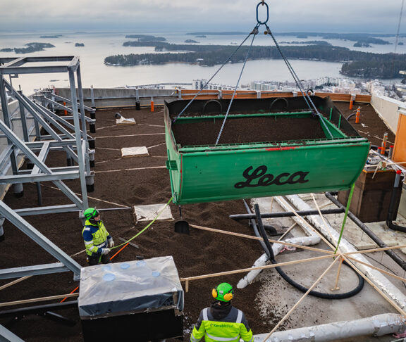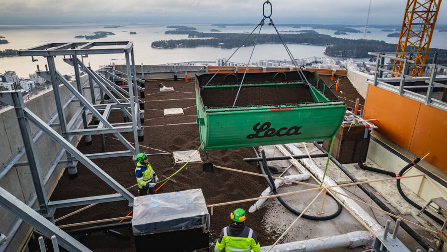 Myös rakennusten kattorakenteissa korostuvat samat vaatimukset. Helsingin Atlaksen tornitalon kattorakenteessa kevytsoraa hyödynnettiin lämmöneristeenä ja kallistusten toteutuksessa. Ratkaisu mahdollisti nopean asennuksen haastavassa kohteessa sekä pitkäikäisen ja toimintavarman kattorakenteen toteutuksen.